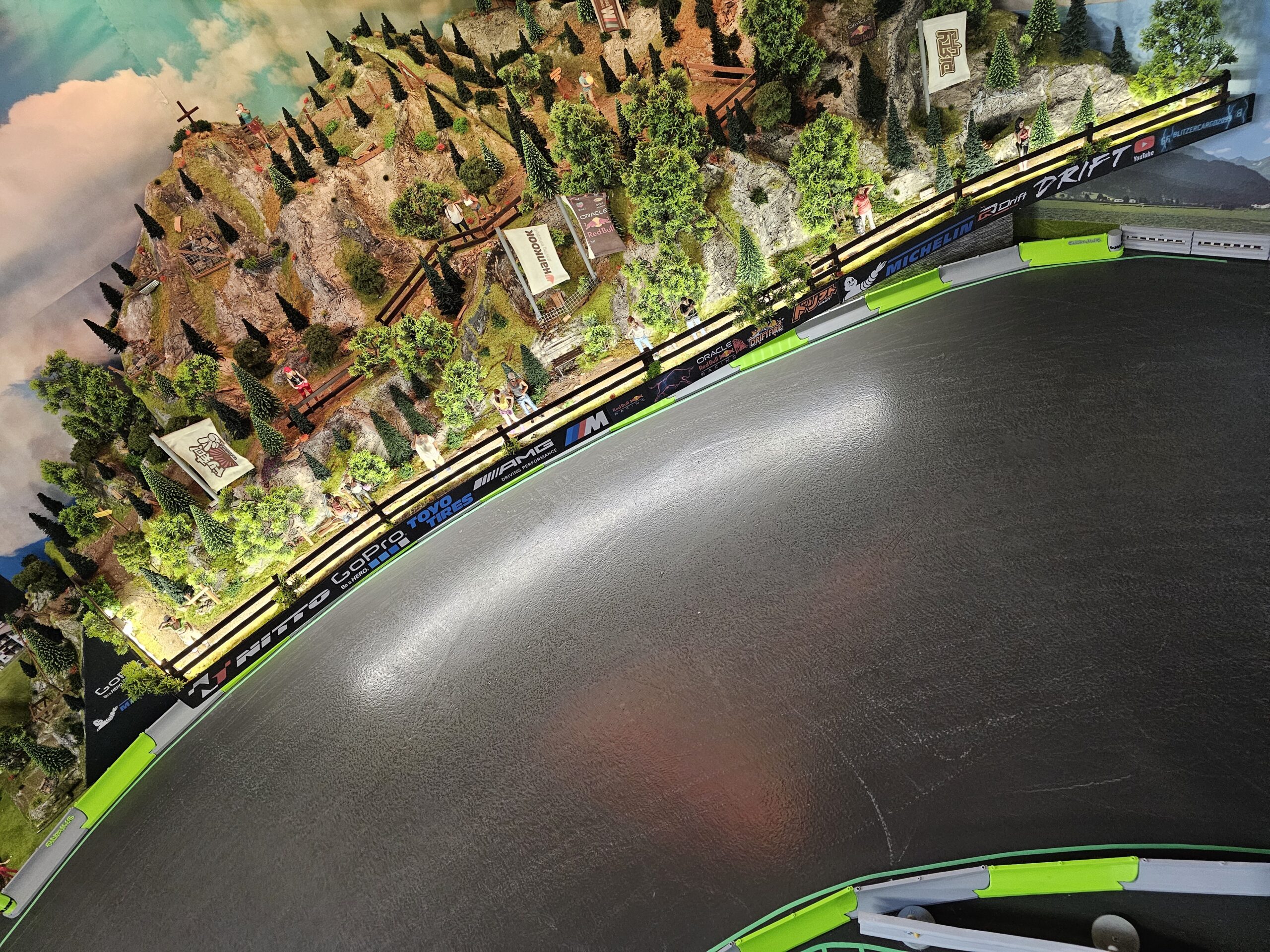 Diese aufwendig gebaute Landschaft ist ein Markenzeichen der Schweizer RC Drift Community und Teil des unverwechselbaren Sideways-Designs.